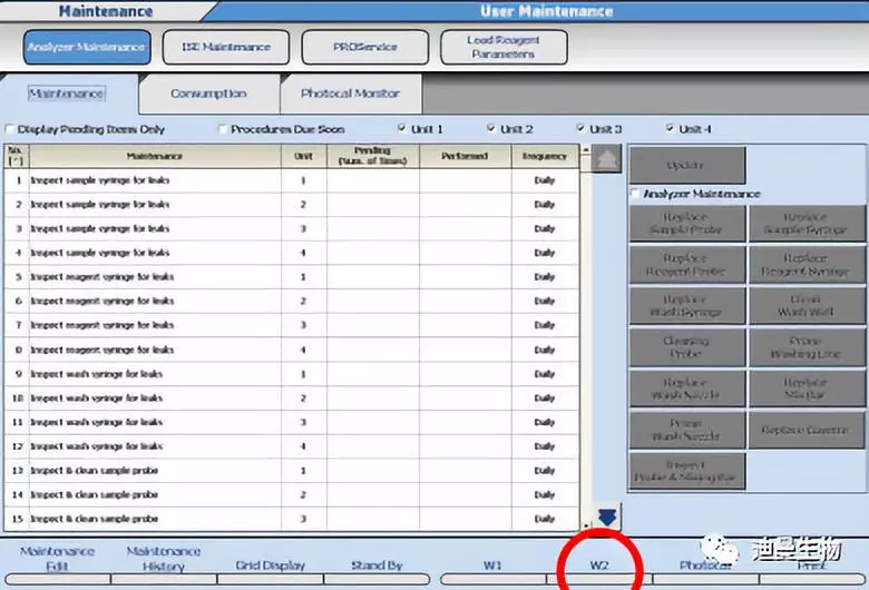 3、在Home>Analyzer Maintenance頁(yè)面找到W2按鍵(如下圖);