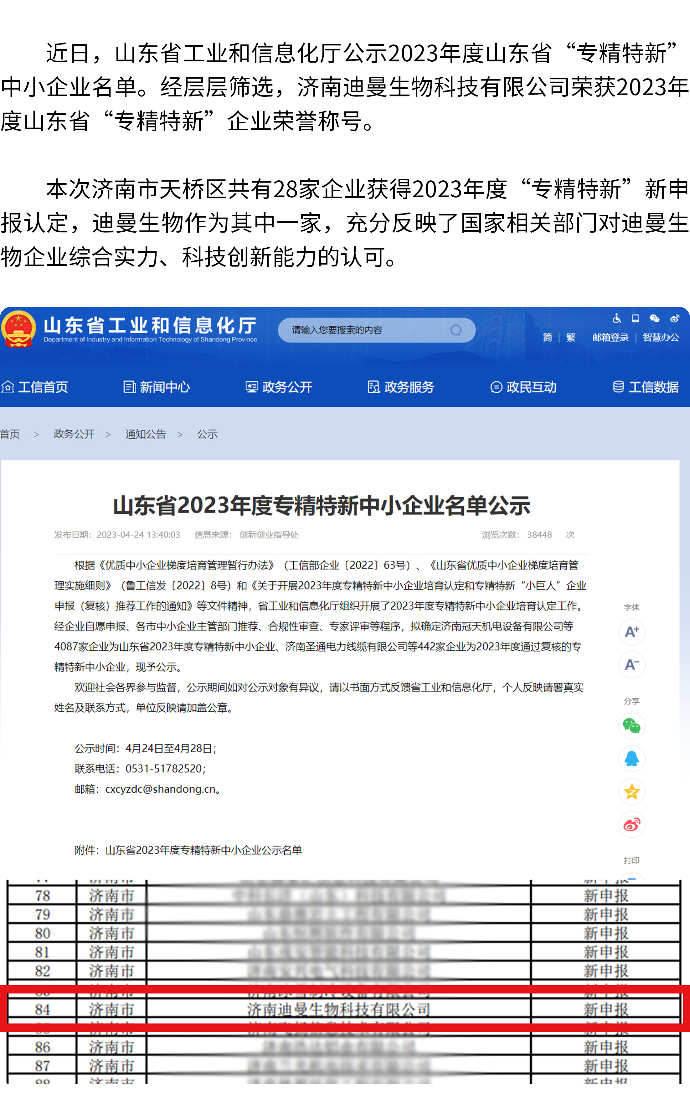 喜報(bào)丨迪曼生物榮獲2023年度山東省“專精特新”中小企業(yè)稱號!